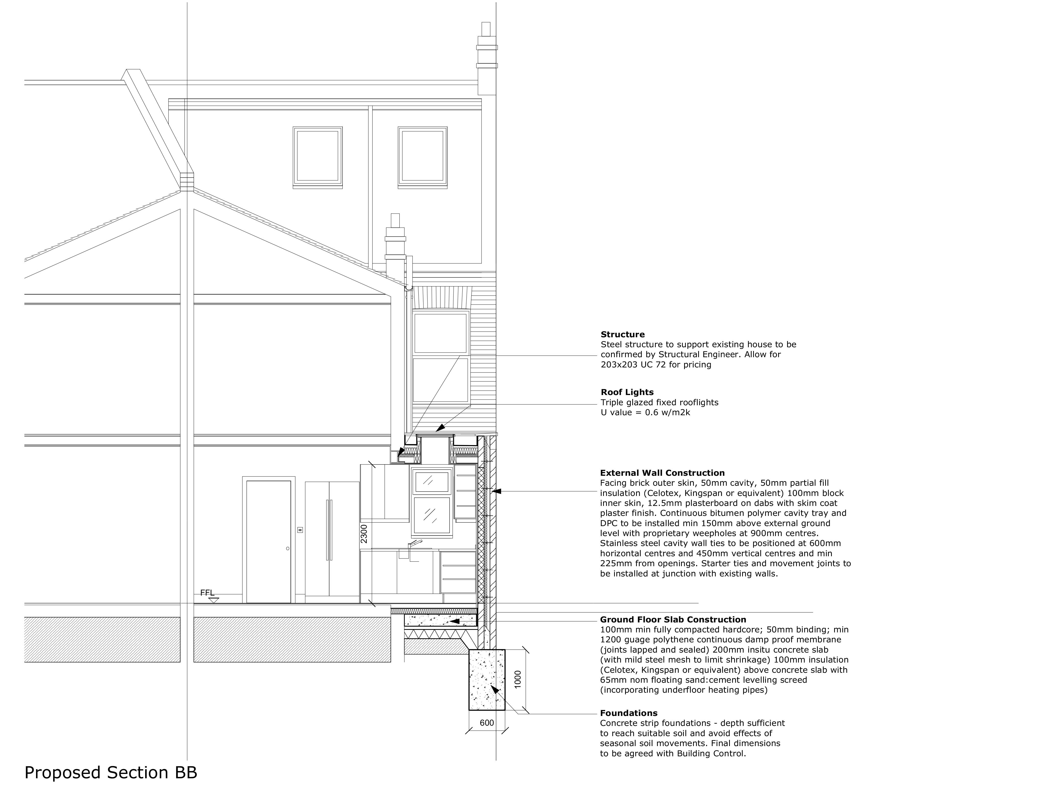 Side & rear extension to Victorian property, to provide a larger kitchen/dining space and new wc.